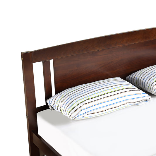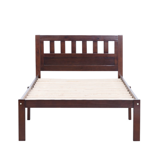 Aamir I Twin Size Bed, Wood Platform Bed Frame with Headboard For Kids, Slatted, Dark Walnut