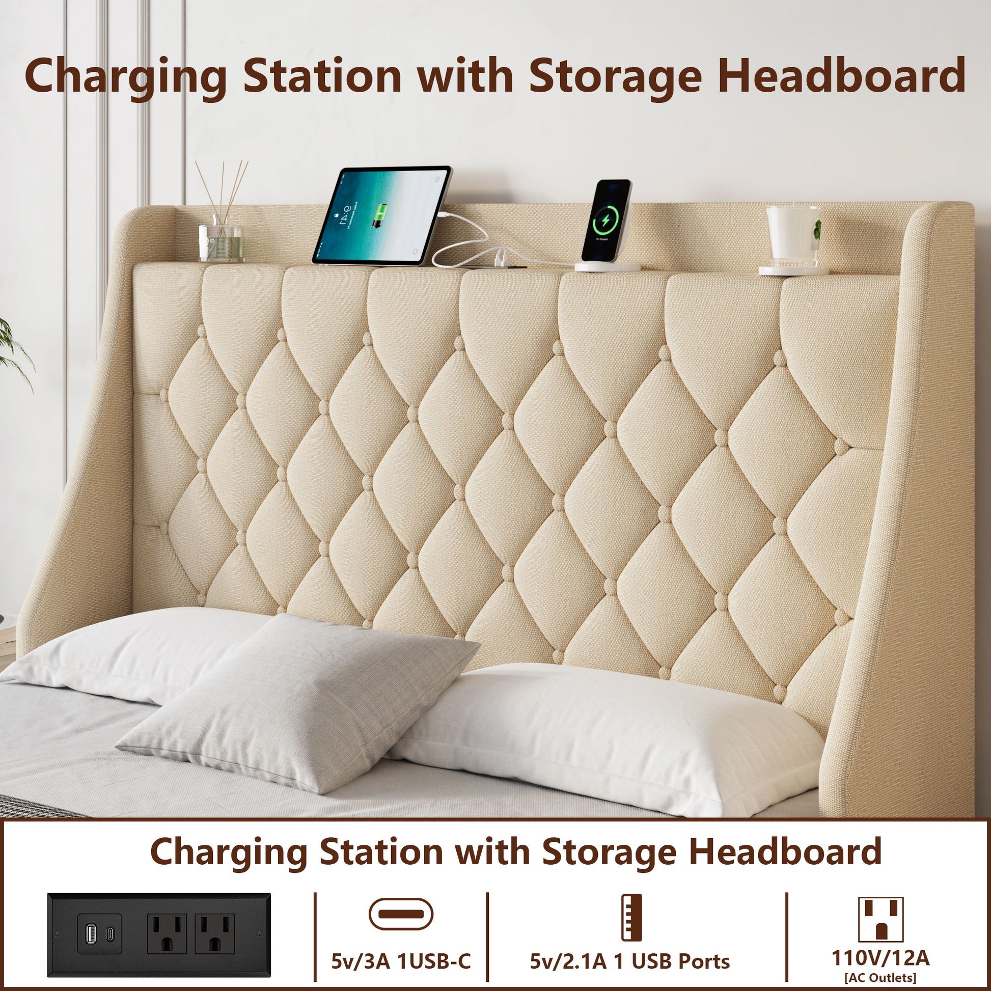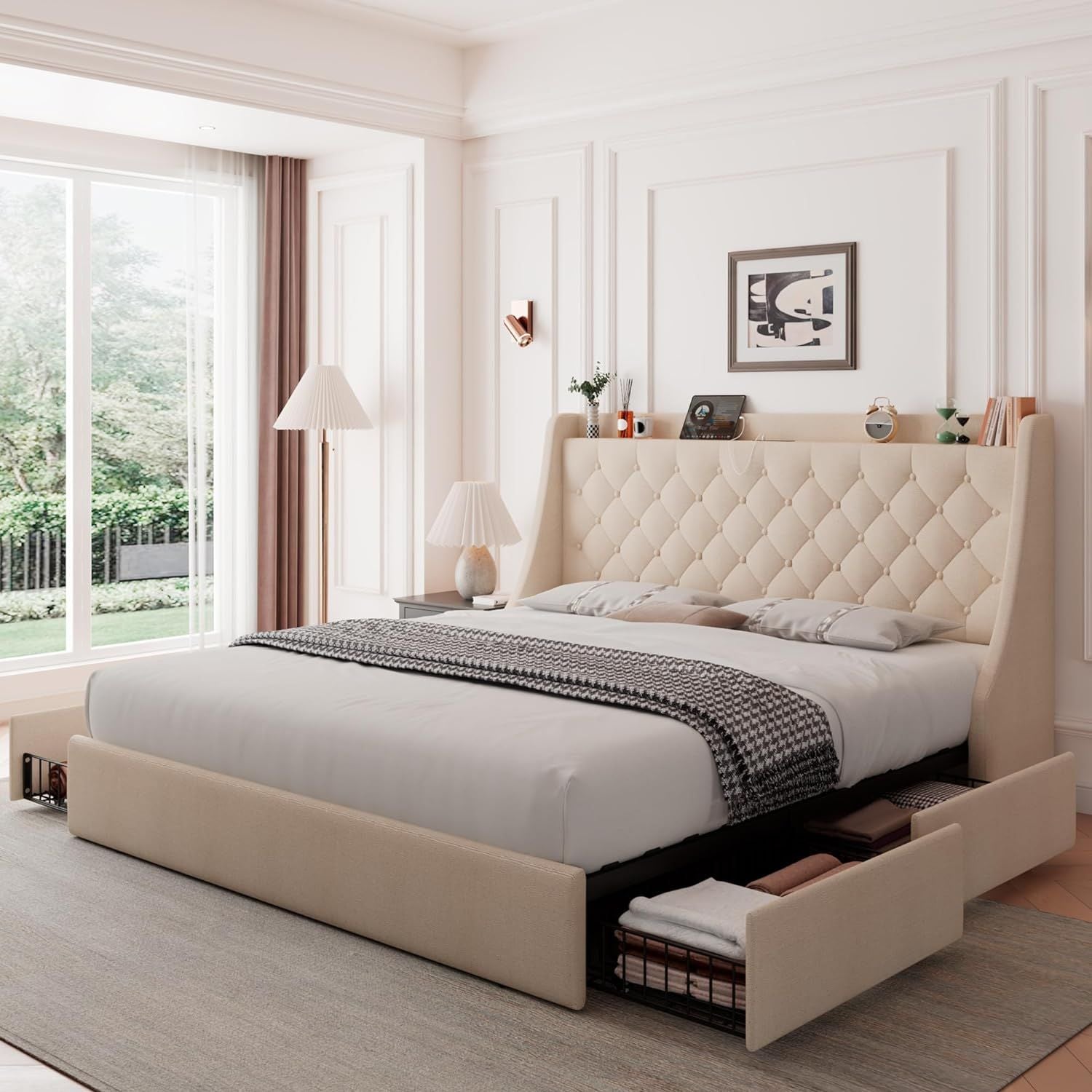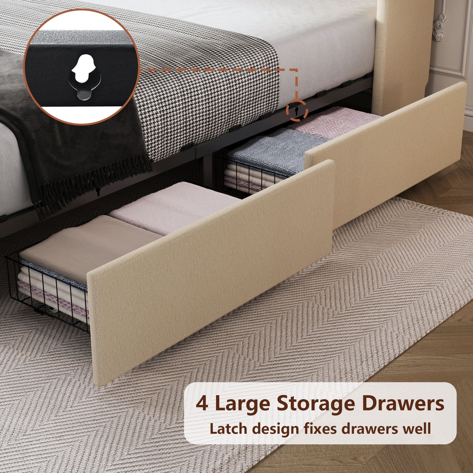 Alija Full Bed Frame with 4 Storage Drawers in Beige Finish