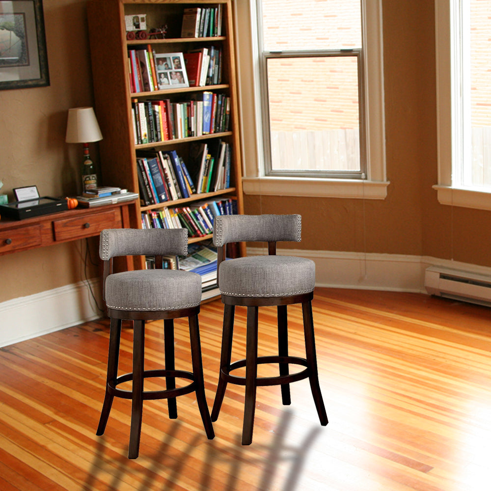 Spruce up your kitchen counter or home bar with the LYNSEY Dark Oak/Light Gray 24" Bar Stool, a fusion of style and comfort. This versatile seating option transcends a simple chair, transforming your space into a haven of modern elegance. Imagine the rich dark oak finish on the wooden frame creating a warm base, beautifully contrasted by the light and airy feel of the light gray padded seat and backrest. Nailhead trim adds a touch of modern flair, making the LYNSEY a standout yet adaptable choice for any décor. But aesthetics are just the beginning.